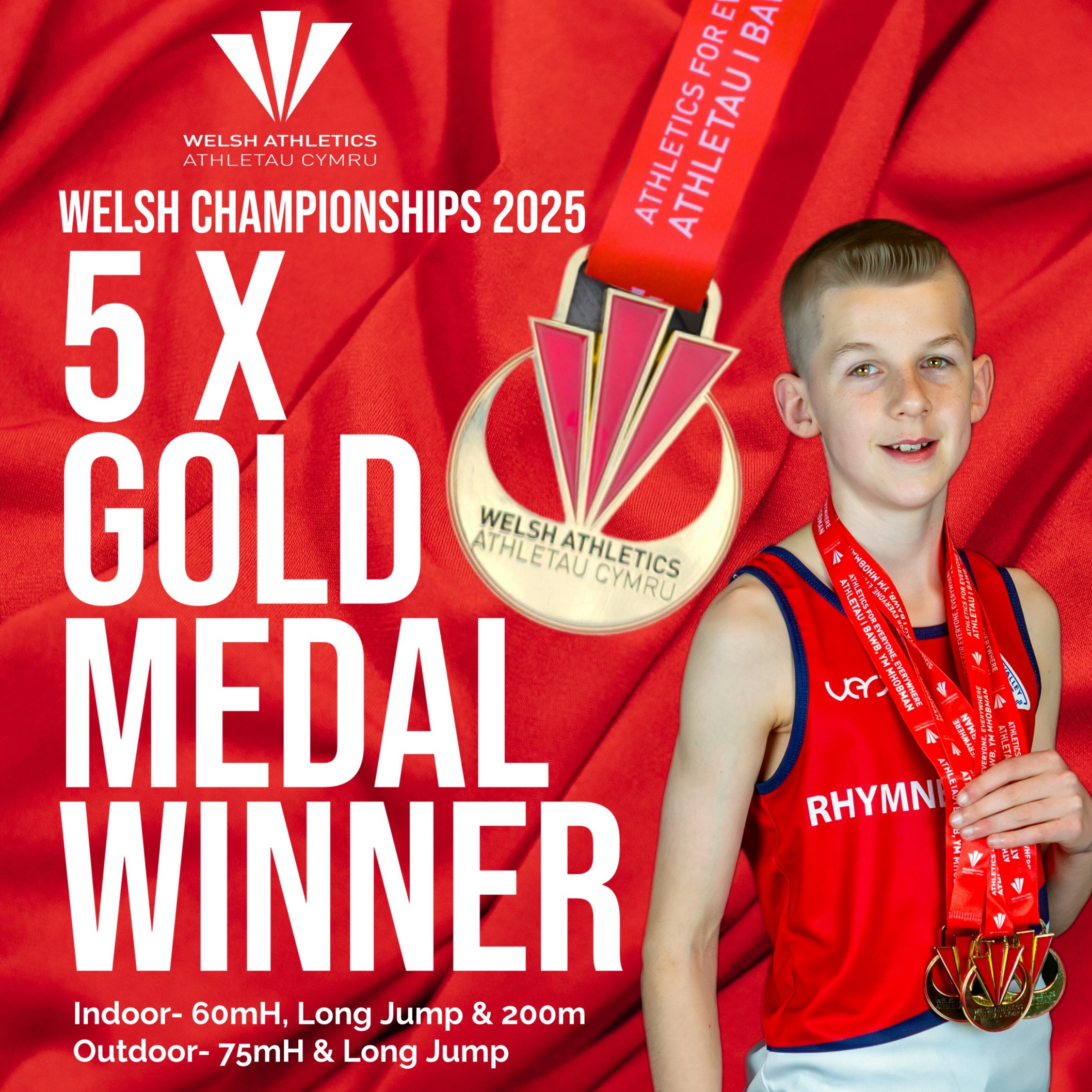 🥇🥇 🥇 🏴WELSH JUNIOR INDOOR CHAMPION 2025- 200m, Long Jump & 60mH. Ranked 1st in Wales for all three indoor events.